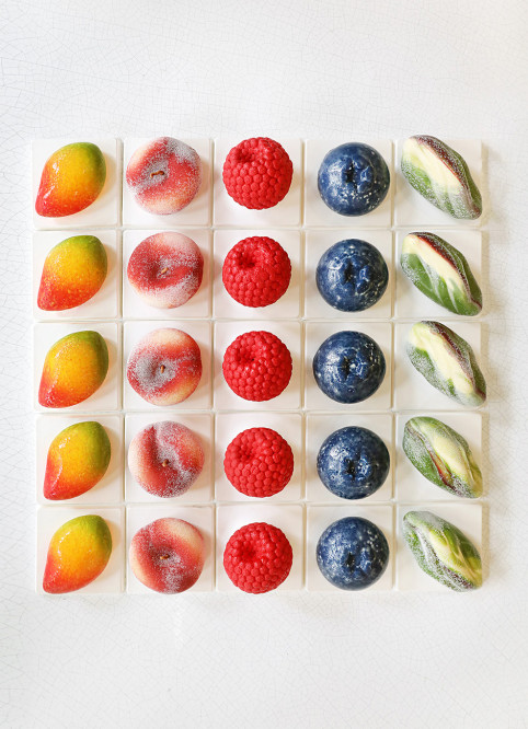 La Pâtisserie du Meurice è celebre per le sue creazioni che sfidano le leggi della percezione: dolci che sembrano frutti veri, scolpiti e lucidi, ma che in realtà non lo sono. Cédric Grolet utilizza cioccolato bianco, pasta di mandorle, gel e mousse per ricreare forme e colori di limoni, pere, mele, arance, pesche, lime, albicocche, ciliegie, pomodori, litchi e persino avocado. Al loro interno, però, custodiscono frutta fresca o preparazioni alla frutta, creando una sorpresa quando si taglia il dolce.