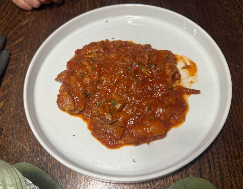 Sui secondi Osteria 96 conferma la stessa solidità vista nei piatti precedenti, soprattutto quando si parla di cotture lunghe. Il picchiapò ne è la dimostrazione: saporito, fatto come si deve, con quella morbidezza che arriva solo da una cottura lenta e ragionata. Un piatto che racconta tradizione senza tentare forzature inutili e che funziona dall’inizio alla fine.