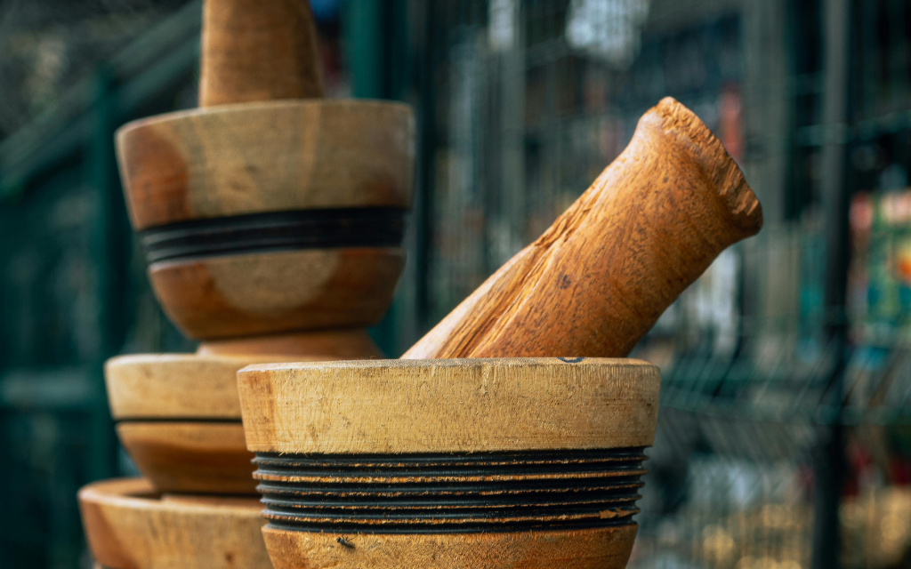 Usati per pestare legumi, melanzane, erbe e spezie. Sono fondamentali per preparazioni come hummus, baba ghannouj e tabbouleh.
